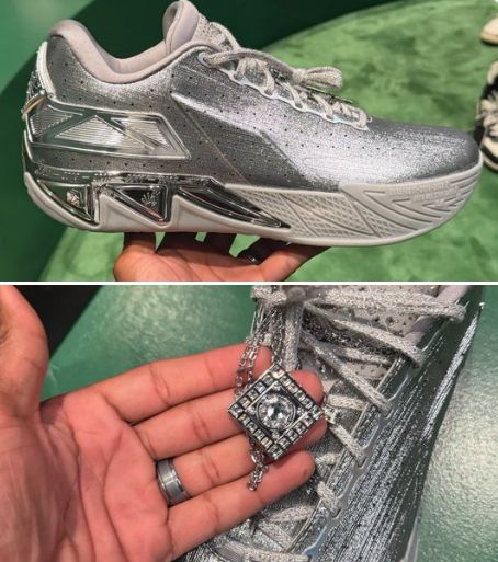 周日下午,全明星期間庫里與約內斯庫、歐文一同訓練的照片和視頻流出:他上腳了安踏狂潮5二代,鞋跟位置赫然印有庫里品牌的Logo。