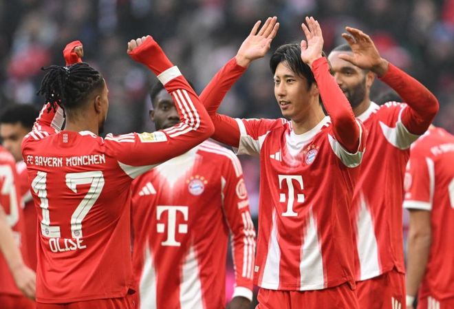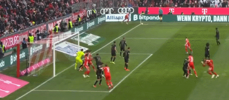 比賽第23分鐘,拜仁取得進球!奧利塞開出角球,伊藤洋輝頭球攻門,球進了!2分鐘后,迪亞斯在禁區左側起球傳中,卡爾后點包抄凌空射門,踢飛了。隨后,迪亞斯在禁區左側小角度射門被封堵出去。